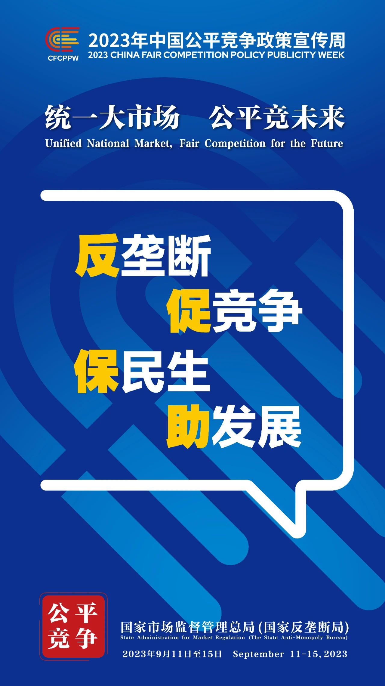 2023年"中國公平競爭政策宣傳周"9月11日~15日將在全國范圍內(nèi)開展